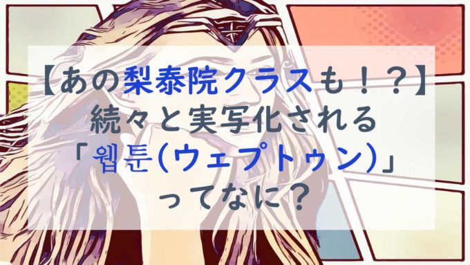 【あの梨泰院クラスも!?】韓国発「웹툰(ウェプトゥン)」ってなに? 2020/12/24 エンタメ 「웹툰(ウェプトゥン)」原作の韓国ドラマが増えてきている中で、そもそも「웹툰(ウェプトゥン)」ってなに?を紹介。