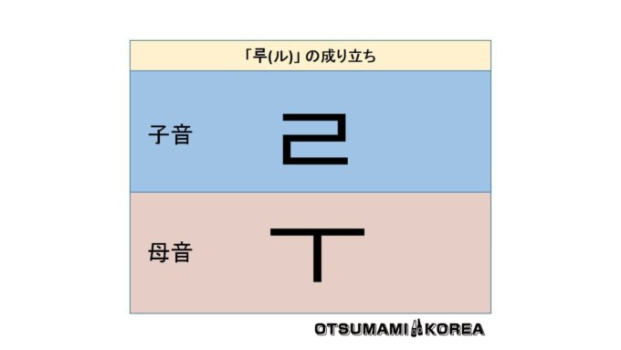 子音の「ㄹ」と母音の「ㅜ」を合わせて「루(ル)」という文字になります。