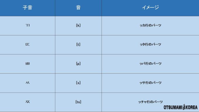 韓国語の文字を習う際、この「パッチム」という言葉をよく聞きますが、何も考えずに「下についた子音はパッチムと呼ぶ」と覚えておけば大丈夫です。「本気と書いてマジと呼ぶ」的な。
