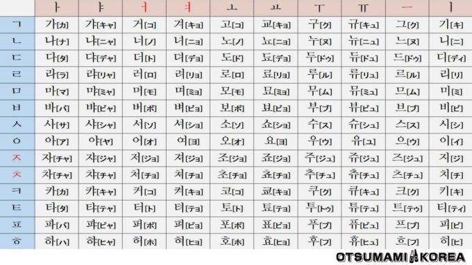 【秒でわかる韓国語】文字早見表(基本子音+基本母音)