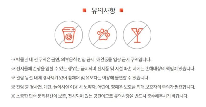 ※大切な民俗文化遺産が保存、展示されている空間であるため、注意事項を必ず守ってください。